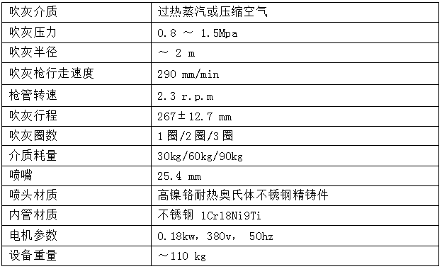 3、單電機結構,吹灰器伸縮、旋轉運動由一根吹灰管完成,結構簡單緊湊 ,運行安全可靠,維修方便。